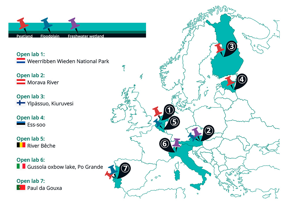 In order to contribute more effectively to the EU reference framework on wetlands and generate higher impacts across Europe, several wetlands in the EU have been selected to carry out the restoration activities. In REWET, the study cases or Open Labs have been selected to cover a range of local conditions and geographic characteristics based on the following criteria: (1) climatic and geographic conditions; (2) type of wetland; (3) vulnerability to natural disasters; (4) social, cultural contexts, vulnerability and (5) governance structures.